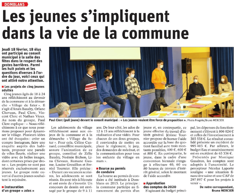 Article du Progrès du 21 février 2021